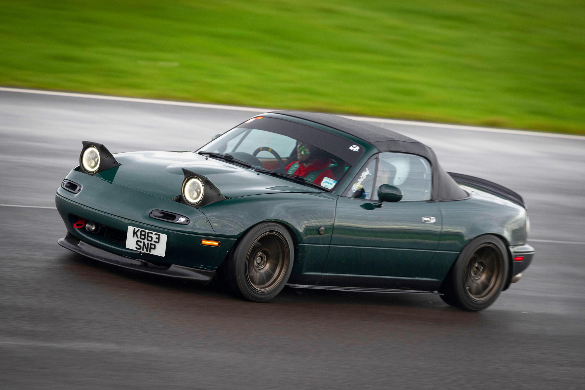 Semi-slicks are popular among serious track drivers for their ability to enhance performance on the track. They offer improved cornering stability, letting you take corners at higher speeds with more confidence. The extra grip also shortens braking distances, allowing for precise handling under high-speed conditions. However, they wear quickly, usually within a season or two, and aren’t designed for wet or street use, so they’re best suited for drivers with a dedicated track Miata who prioritize performance above durability.