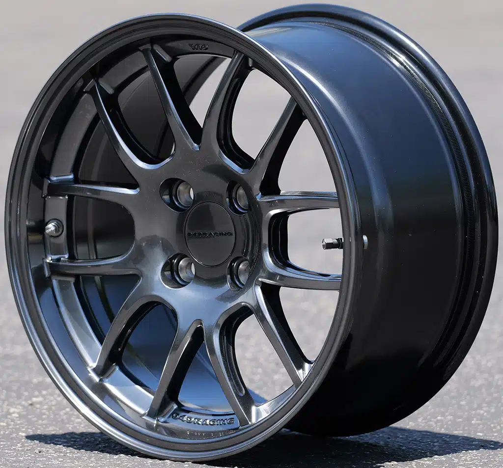 For a more performance-focused setup, the 15×8 with a +25 offset offers an ideal balance between track capability and aggressive styling. The wider 15×8 wheels allow for more grip, and the +25 offset gives the car a sportier stance. However, this setup may require minor fender rolling, especially if paired with 225/45R15 tires for track use. This size provides increased cornering stability, making it a popular choice for those who track their Miatas. Wheels like the 949 Racing 6UL and Enkei PF01 are excellent choices for this configuration.