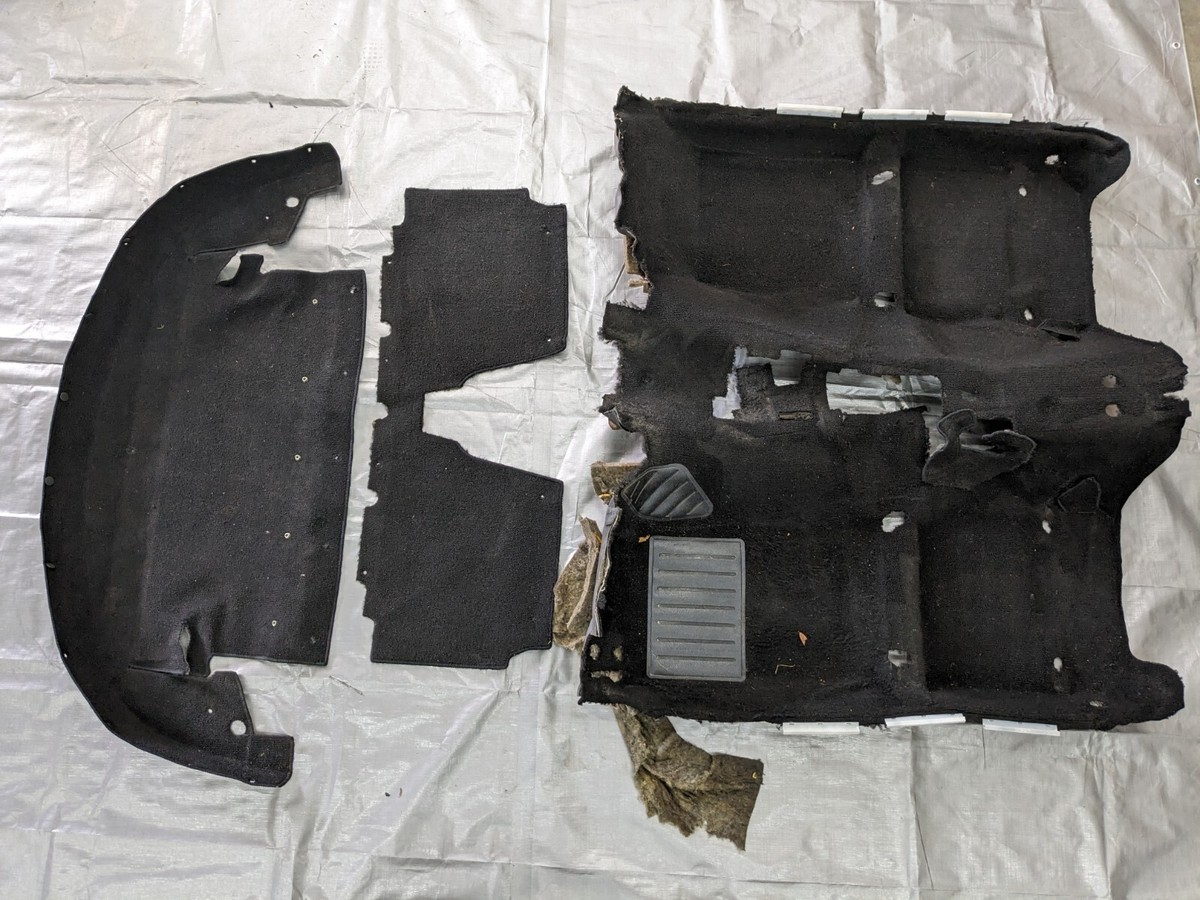A good Miata-specific molded carpet is worth it. It’s formed for the tunnel humps and rear shelf, usually arrives with the holes you need, and is designed to install with the dash still in place. Most molded kits come in three pieces, left floor/tunnel, right floor/tunnel, and the rear parcel shelf, which makes life easier and gives you cleaner seams. Replace the crumbly factory jute with a dedicated underfelt kit while you’re in there; it adds plushness and a small but noticeable drop in noise.