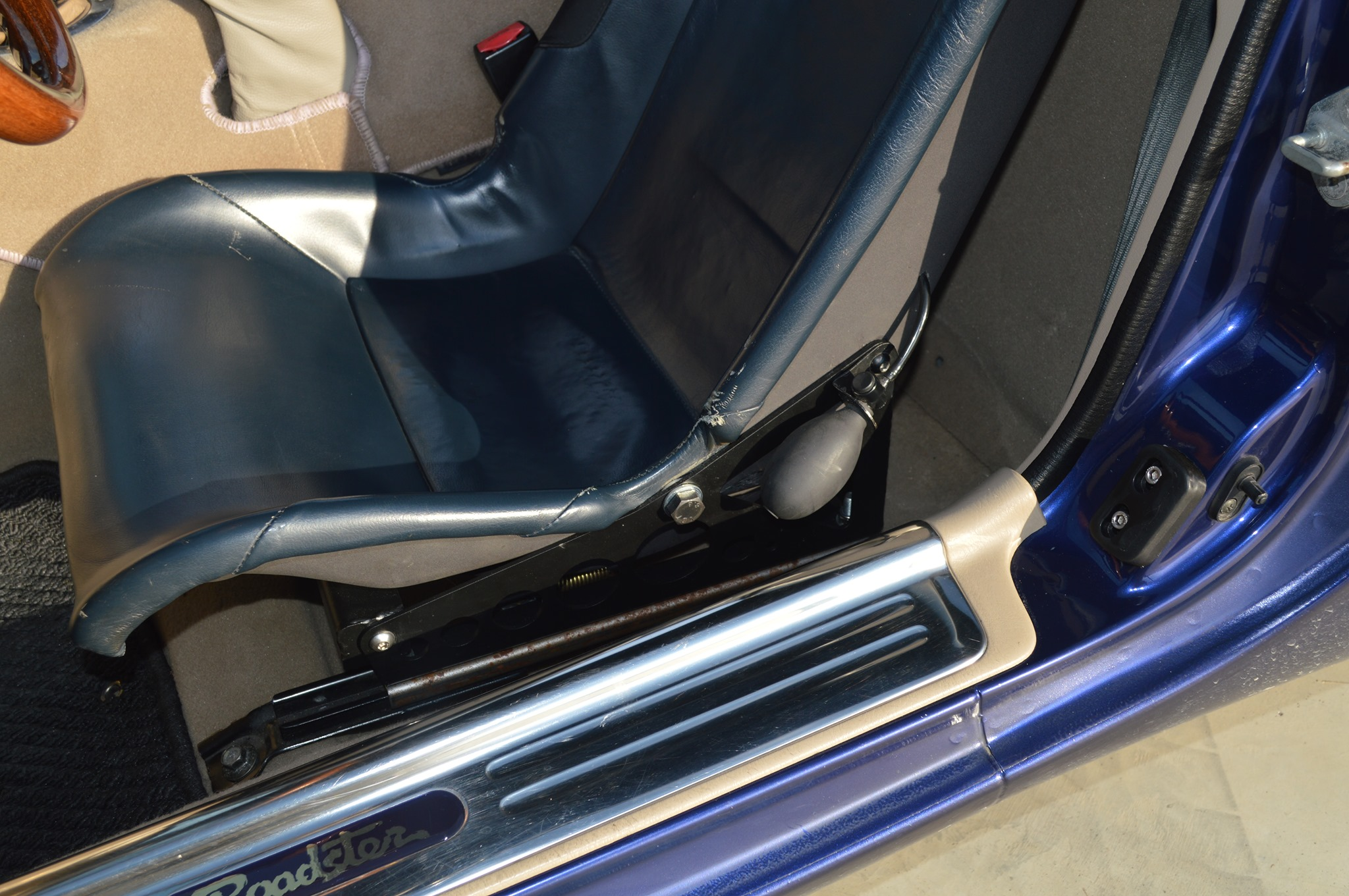 DCBE Tech Elise/Exige adapters let you bolt Elise-pattern seats to the factory sliders, keeping fore-aft adjustment while dropping the hip point dramatically compared with late-NB seats. It’s a classy OEM-plus route that saves real weight without shouting “race car.”