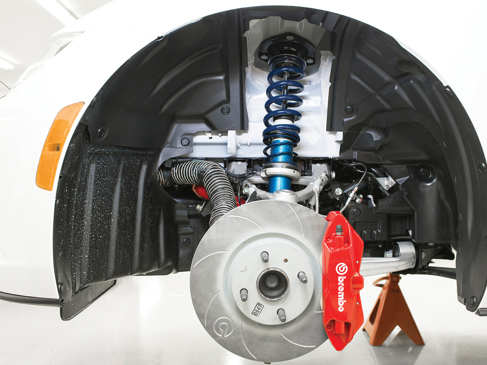 Street cars range from sliding calipers to an optional Brembo front package on performance-oriented trims. Cup cars step up to a Brembo racing front kit with specified Pagid compounds. The goals are stable pedal feel, less fade through restarts and long green-flag runs, and wear rates that make sense over a race weekend. It’s not about the single best panic stop; it’s about the fiftieth stop feeling like the first.