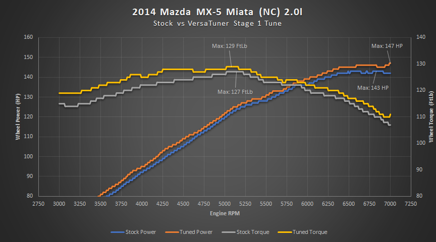 Enter the real, running weight of the car, driver, cargo, and the fuel that’s actually in it, because weight error shifts the whole curve up or down. Enter your actual tire size so road speed math matches reality. Then add your exact transmission ratios and final drive for your trim. Many NA/NB cars use a 4.10 diff, but some NBs came with 3.636 or 3.909. NC and ND combos are different again. If you’re unsure, sanity-check by comparing logged RPM and speed in a fixed gear; if they don’t match what your ratios predict, your tire diameter or gearing entry is off.