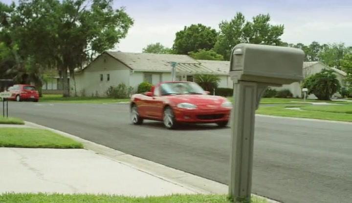 A 2007 Mazda Miata plays an often overlooked in the horror mockumentary Paranormal Activity. The car is owned by the main characters, Katie and Micah, and is seen in several scenes, including one where it adds to the tension by being the subject of a mysterious event. The Miata is often overlooked in this movie because of its appearance only in the movie’s day scenes which is probably skipped by most viewers.