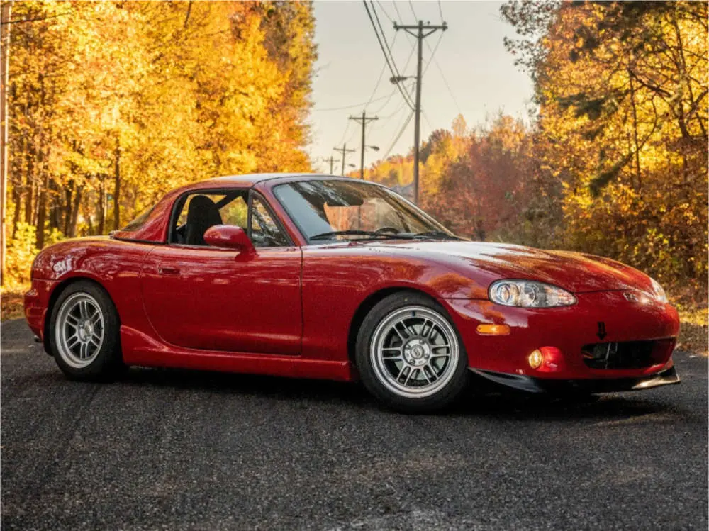 Choosing the right wheels and tires is where your build truly comes to life. Aggressive setups like 15×9 or 15×10 wheels with offsets between +10 and +20 are ideal for stanced Miatas. Popular wheel brands include Rota Grids and Enkei RPF1s, known for their stylish designs and compatibility with Miata builds.