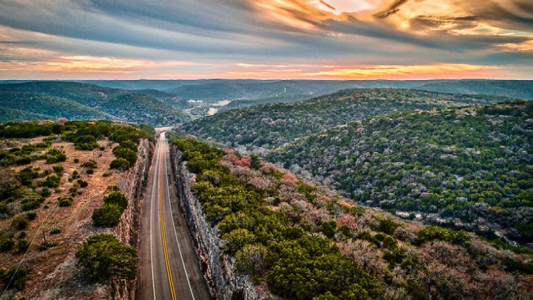 The Twisted Sisters are Texas’ best-known driver’s loop, a cluster of ridge roads that thread across canyons and limestone hills. The experience is classic Hill Country: fast sweepers along the ridgelines, short sightlines as you dip into draws, and just enough elevation to keep you honest. It’s a half-day adventure even if you only stop for coffee and a couple of photos.
