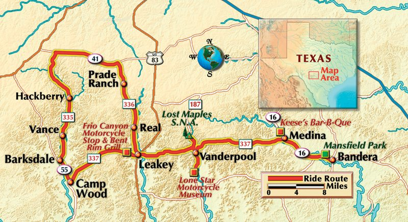 Route 1 , The Twisted Sisters (RR 335/336/337): Medina–Leakey–Vanderpool–Camp Wood Loop