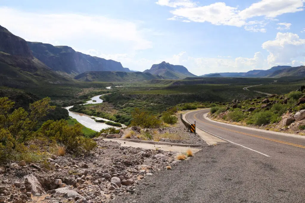170 is a desert ribbon that traces the Rio Grande between rocky folds, with the river glinting below and Mexico in view across the water. It’s one of the most scenic paved drives in Texas, mixing long-range vistas with roller-coaster elevation whoops that never feel out of control.
