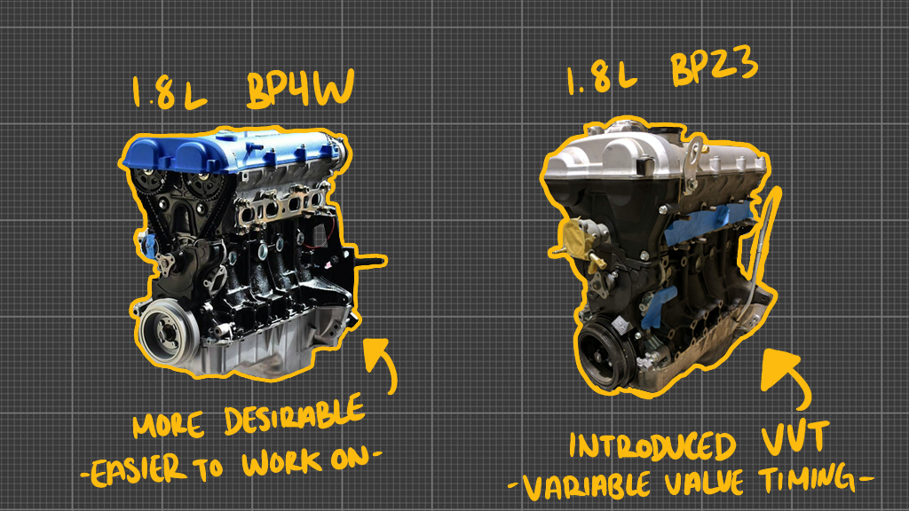 The NB Miata is powered by a range of engines, depending on the model year and variant. The most common engine found in the NB Miata is the BPZ3 1.8-liter inline-four, which delivers a balance of power and efficiency. This engine produces around 140 to 146 horsepower and is mated to either a five-speed manual or automatic transmission. (Earlier model years of the NB had the BP4W engine, which also is a 1.8liter inline-four but it didn’t have VVT technology)